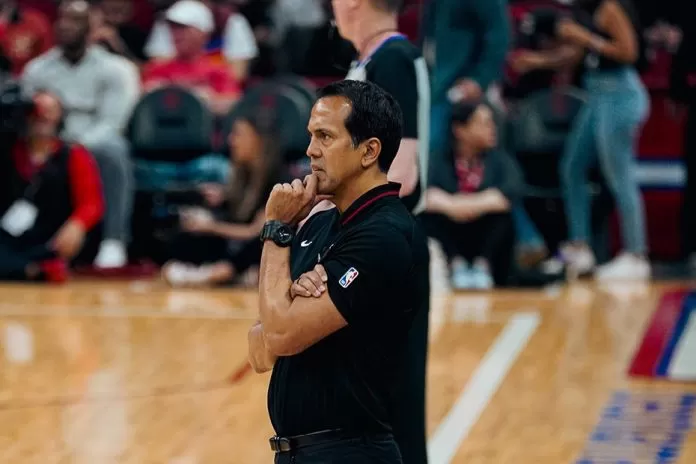 Erik Spoelstra reacts to Kasparas Jakucionis improvement