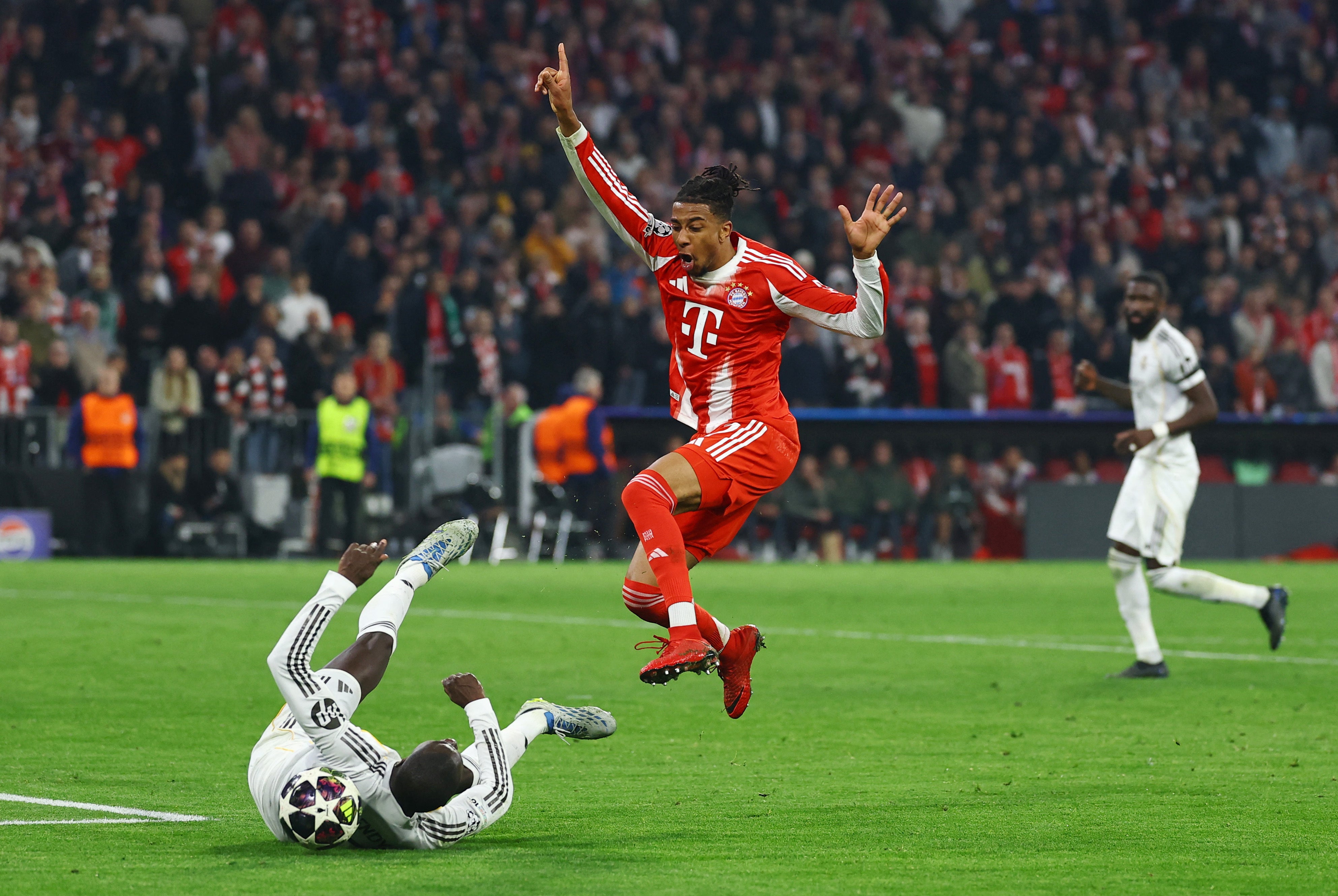 With Real ahead late in the second half and the score 4-4 on aggregate after a breathless first, it looked to be heading towards extra time. But substitute Eduardo Camavinga was given a second booking for kicking the ball away and delaying a Bayern free-kick, with his moment of madness turning the tie on its head.
