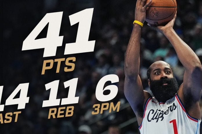 [embedded content] James Harden recorded 41 points, 14 rebounds, and 11 assists, including four clutch points in the second overtime, to lead the Los Angeles Clippers...