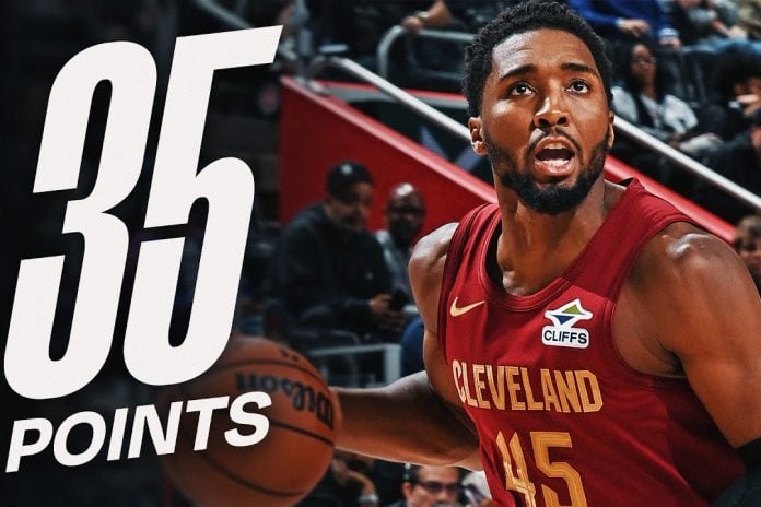 Donovan Mitchell scored 35 points in just 29 minutes as the Cleveland Cavaliers defeated the Detroit Pistons 116-95 on Monday night at Little Caesars Arena.
