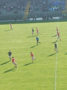 It was a point apiece after 4 minutes, Rathmore then going 2 points in front. A David Clifford 2 pointer brought East Kerry level on 11 minutes. Paul O’Shea scored another 2 pointer a minute later to put East Kerry 2 up. Rathmore responded with a Mark Ryan goal to nudge in front at 1-3 to 0-5. It was 1-4 to 0-5 after quarter of an hour. Thee was a single point in it with 7 minutes left in the half; 1-4 to 0-6. Rathmore were the better side in that opening half, after which they led by 1-6 to 0-7.