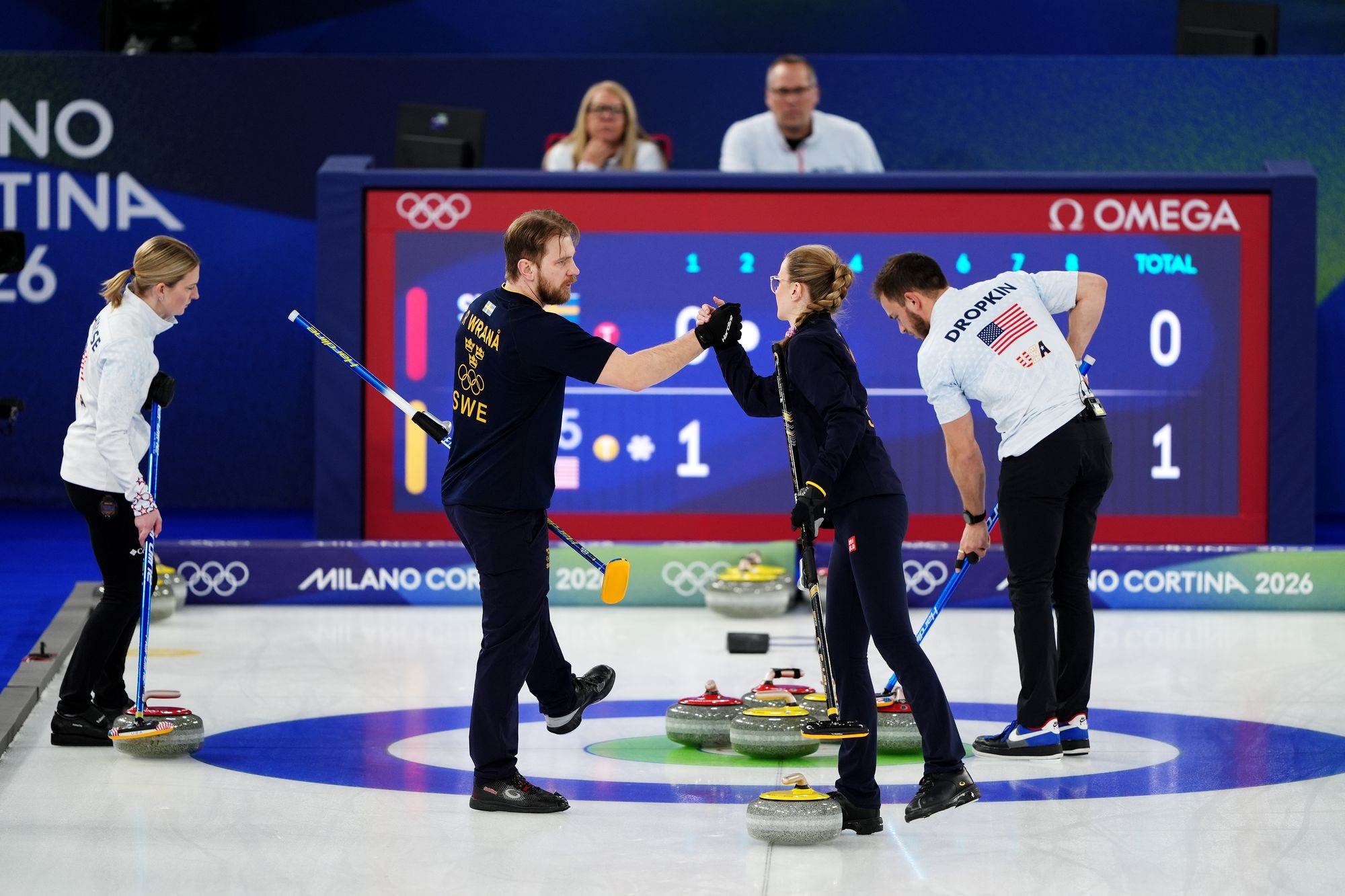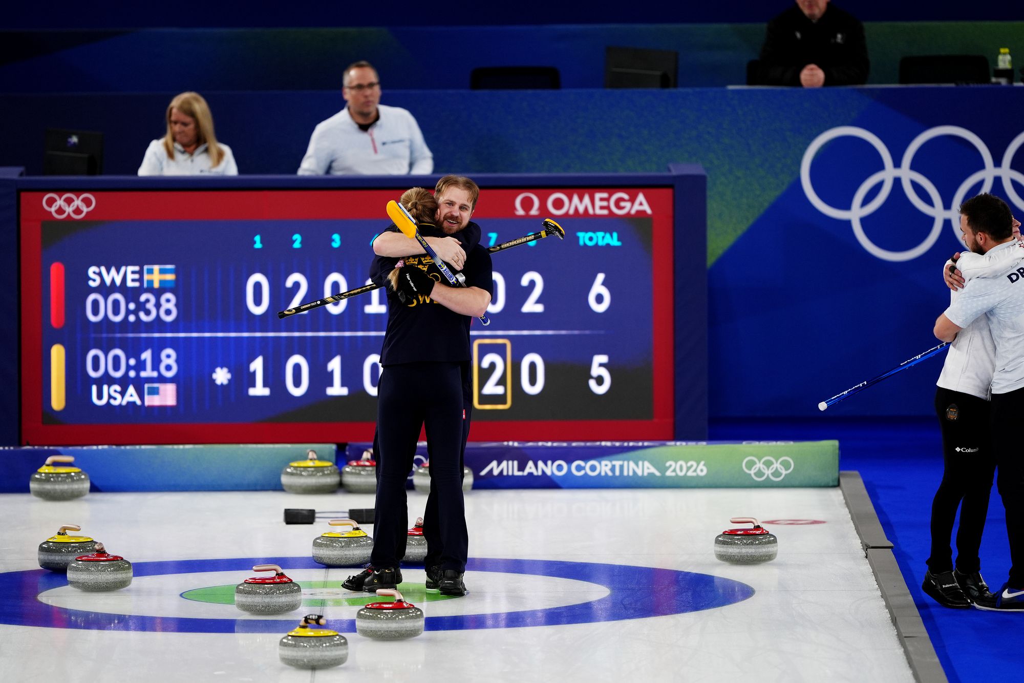 The US reply but taking the Swedish stone out of the button, though Wrana can’t reply with their penultimate shot.