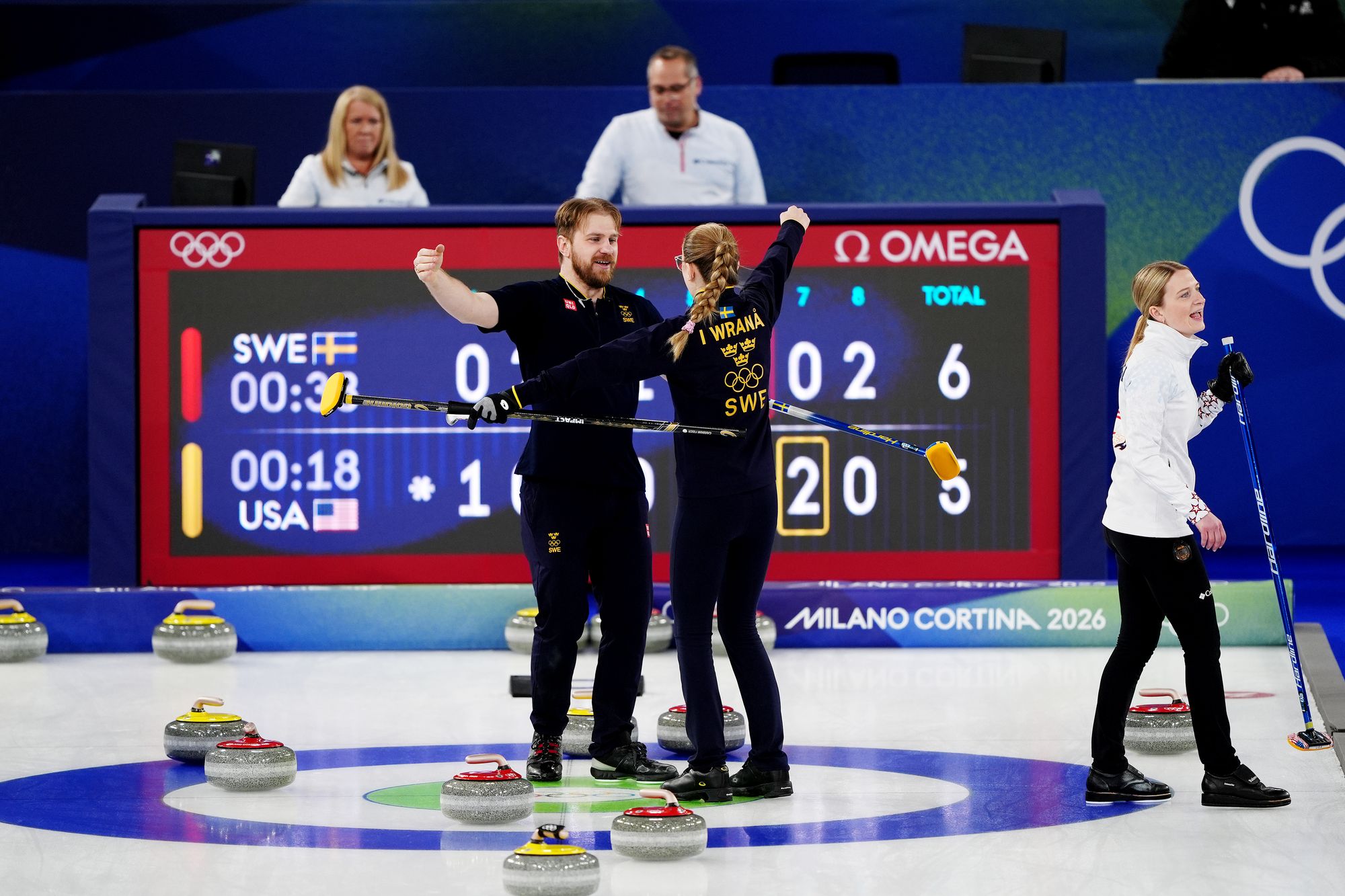 Not great on the first shots but Sweden get into the button before Wrana knocks out a US stone.